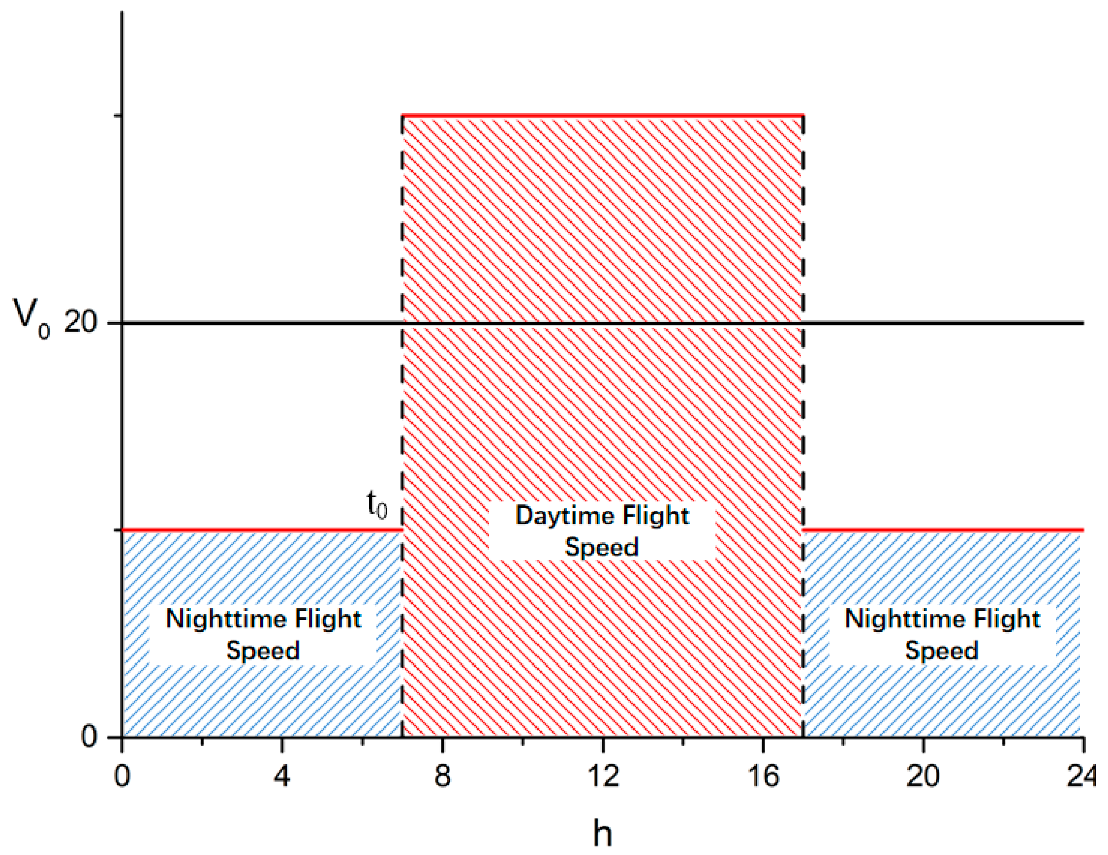 5.1. Overall Configuration with Different Daytime and Nighttime Flight Speeds