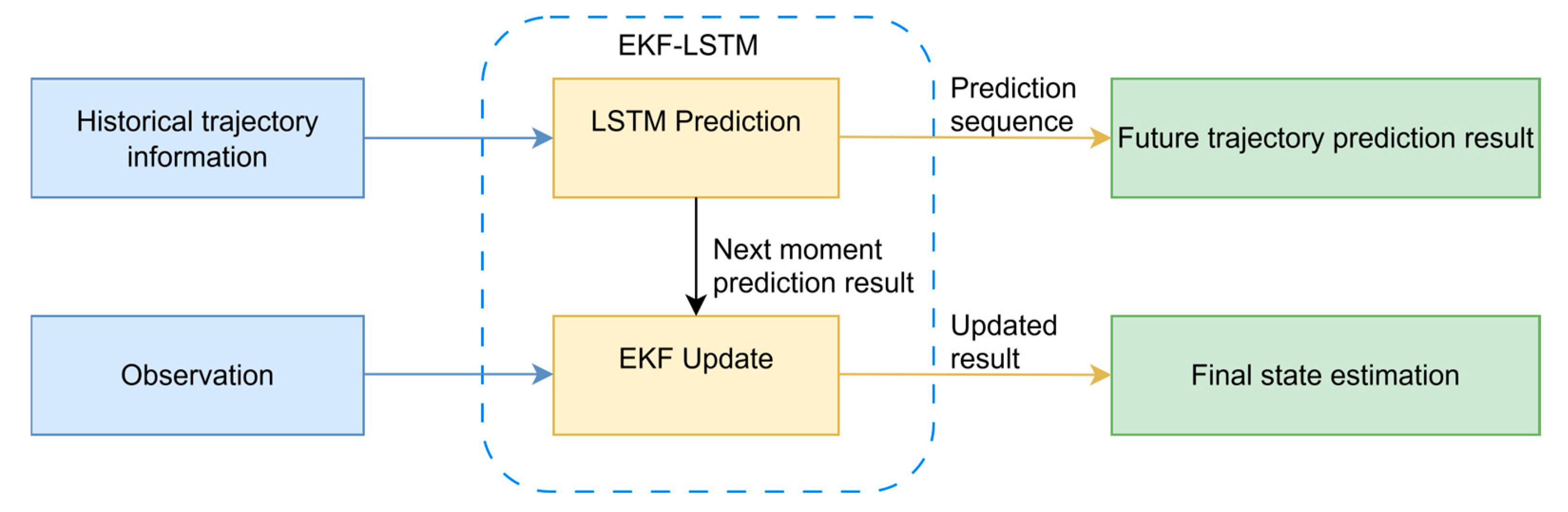 2.1. EKF-LSTM Fusion Prediction Model for Trajectory Prediction