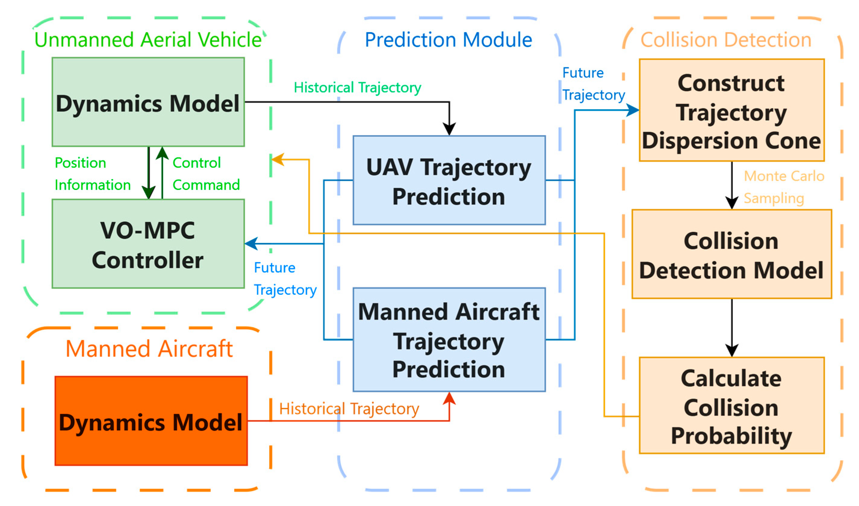 - Integrating EKF-LSTM prediction, TDC-based uncertainty quantification, and VO-MPC forms a unified safety assurance framework that addresses safety challenges in manned–unmanned collaborative flight.