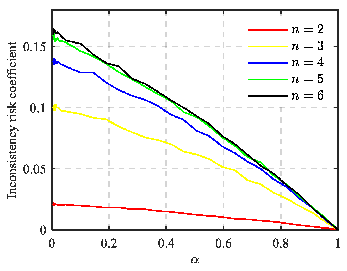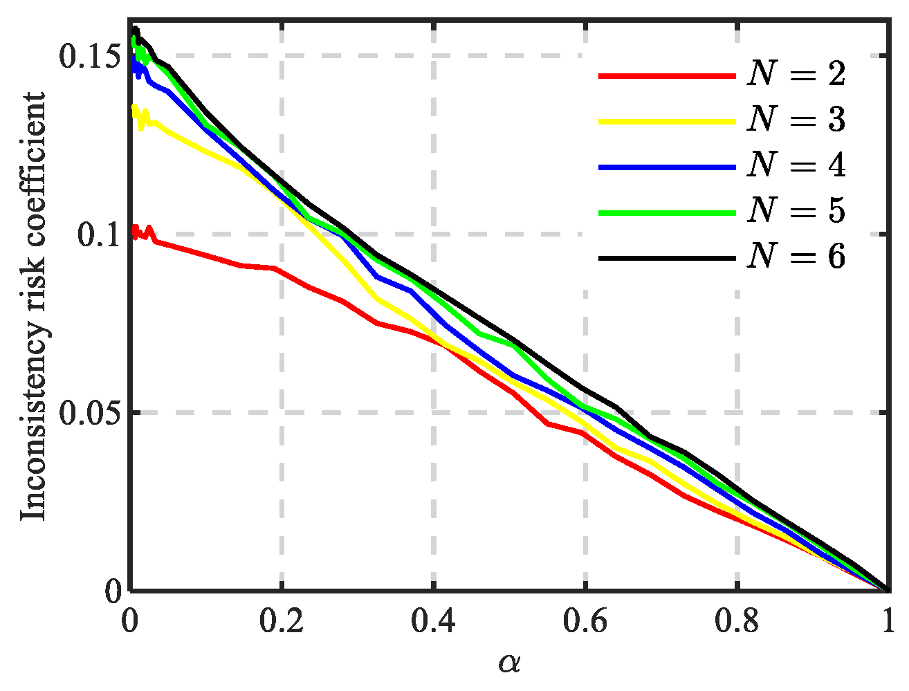 The variation of the inconsistent risk coefficient corresponding to (when , respectively.