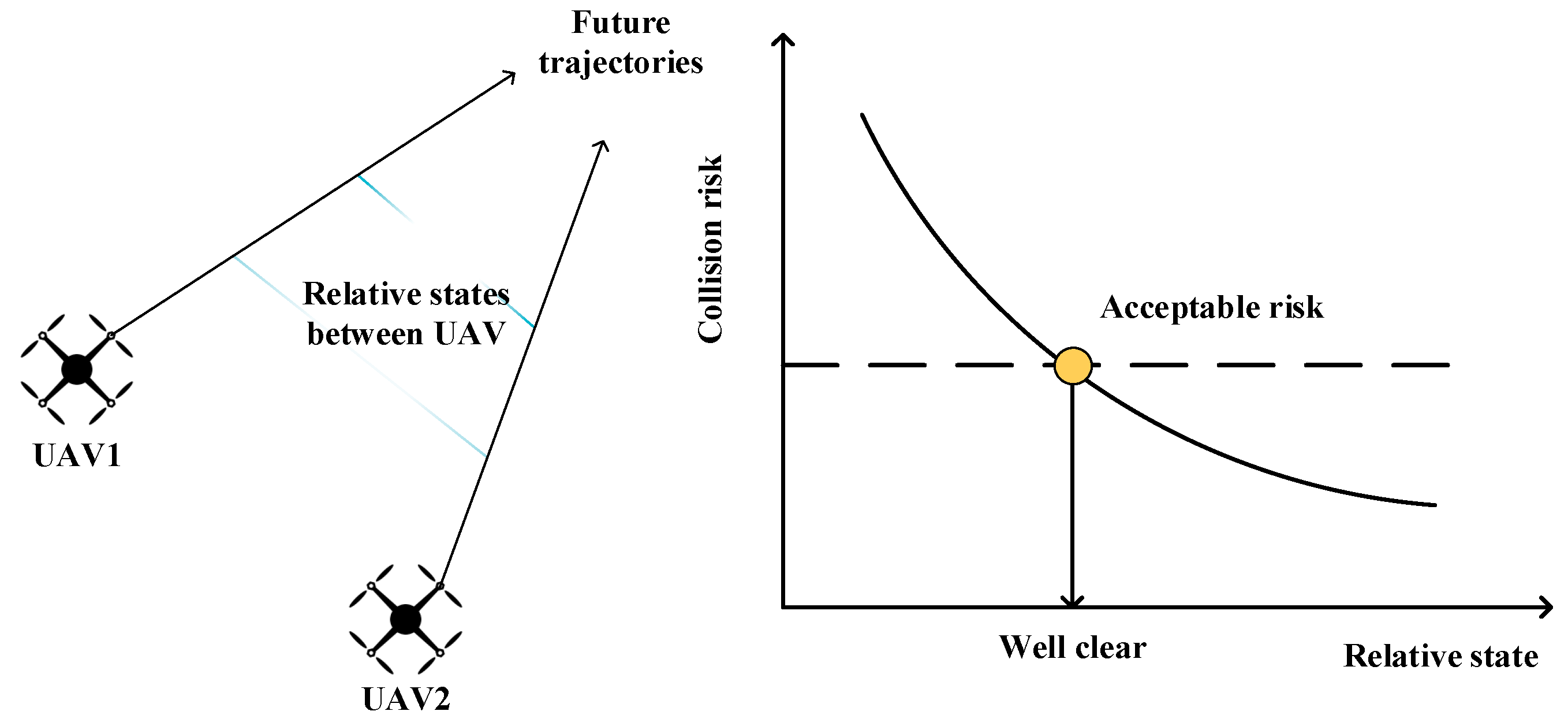 • To review and assess the existing risk evaluation and collision-avoidance methodologies, including deterministic and probabilistic separation models, geometric and optimization-based approaches, and structured airspace frameworks such as the virtual-tube concept for large-scale swarm operations.