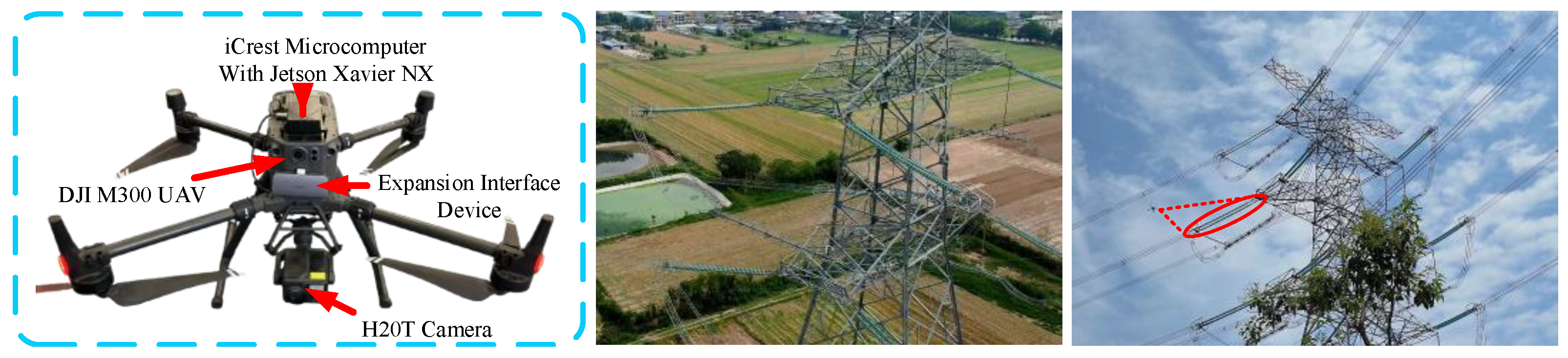 - Yin, L.; Hu, J.; Wang, W.B.; Zou, J.C.; He, L.X.; Xiong, Z. Parameters Optimization of UAV for Insulator Inspection on Power Transmission Line. IEEE Access 2022, 10, 97022–97029. [Google Scholar] [CrossRef]