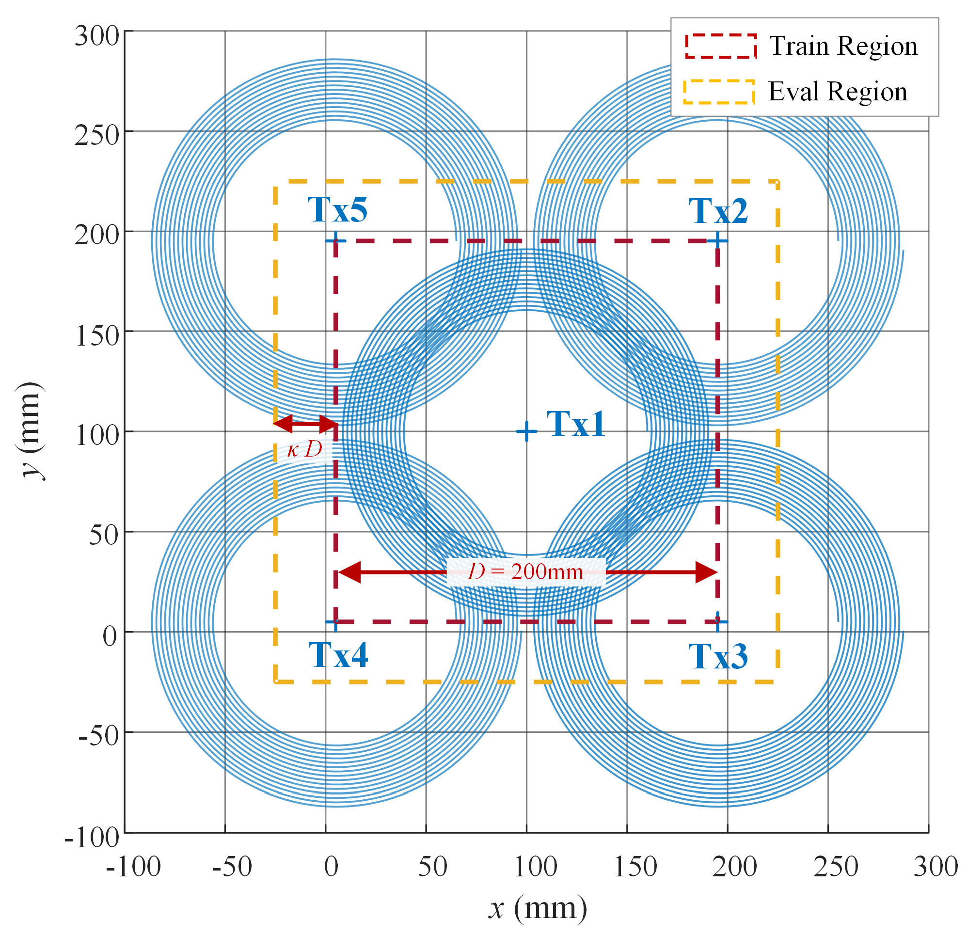 | 3: | Sample receiver position (xr, yr) within working area |