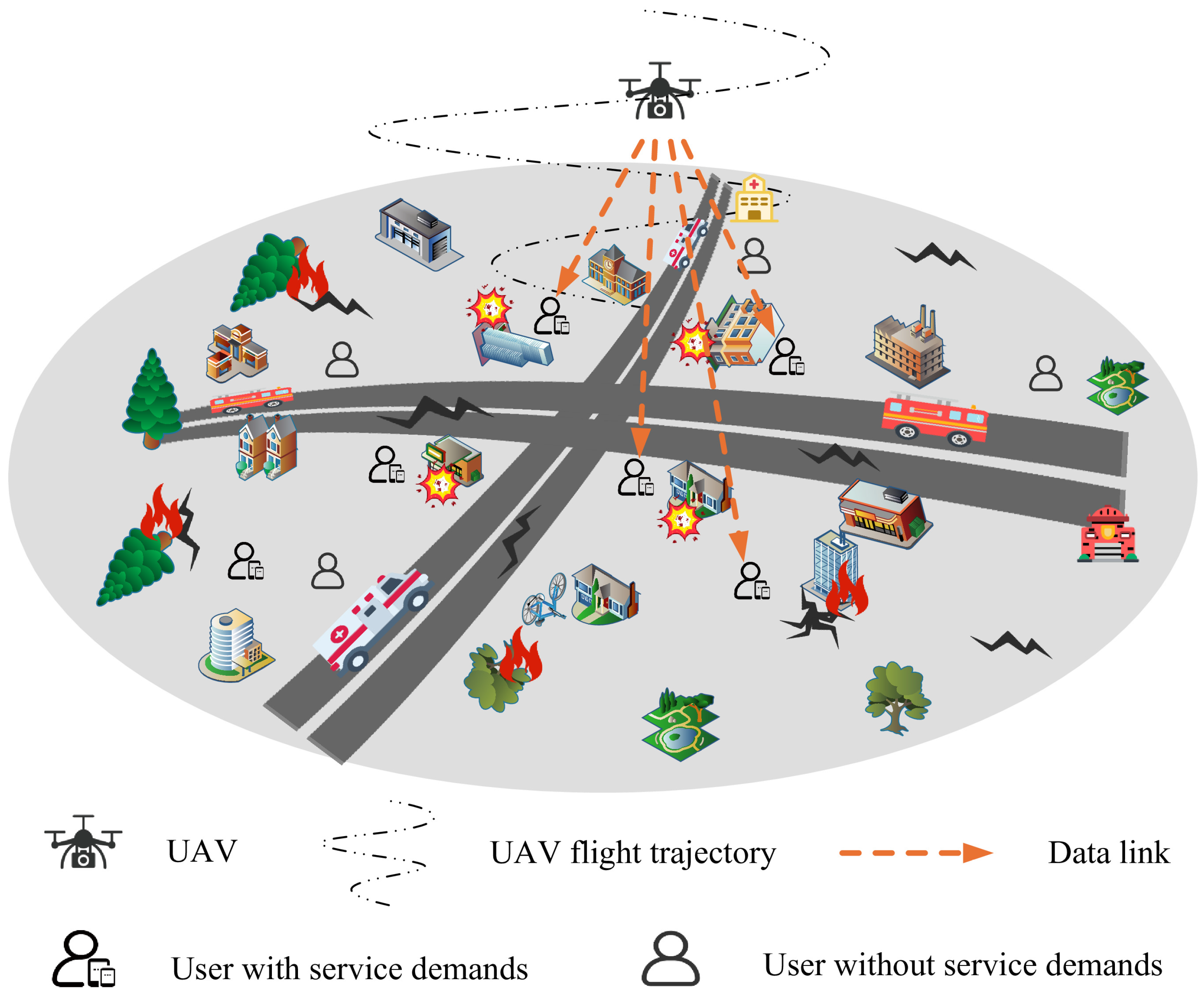 2]. Unlike conventional emergency communication technologies, UAV-assisted methods enable rapid and flexible deployment, unrestricted by ground traffic conditions [