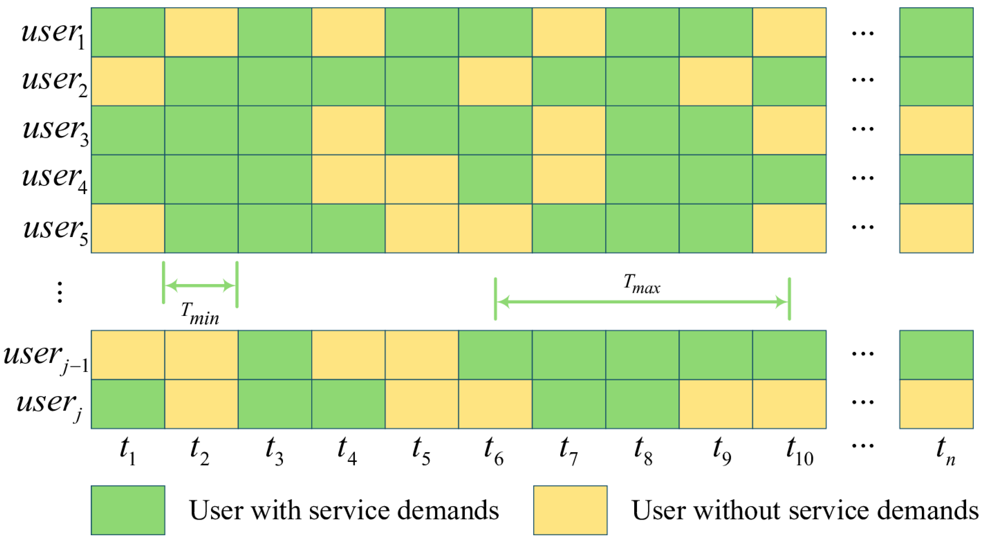 t, users with services do not generate new services when processing current services, and users without service demands generate task requirements with a probability of