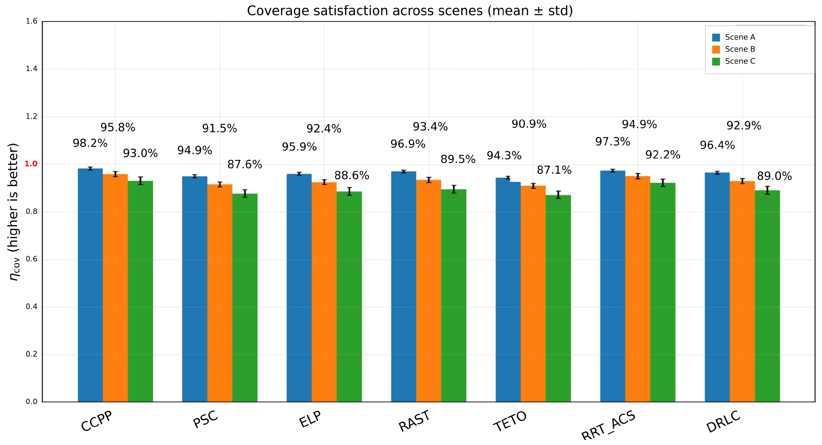 , which evaluates how well the coverage requirement is satisfied; a higher value indicates more complete and stable area coverage. With the updated results,