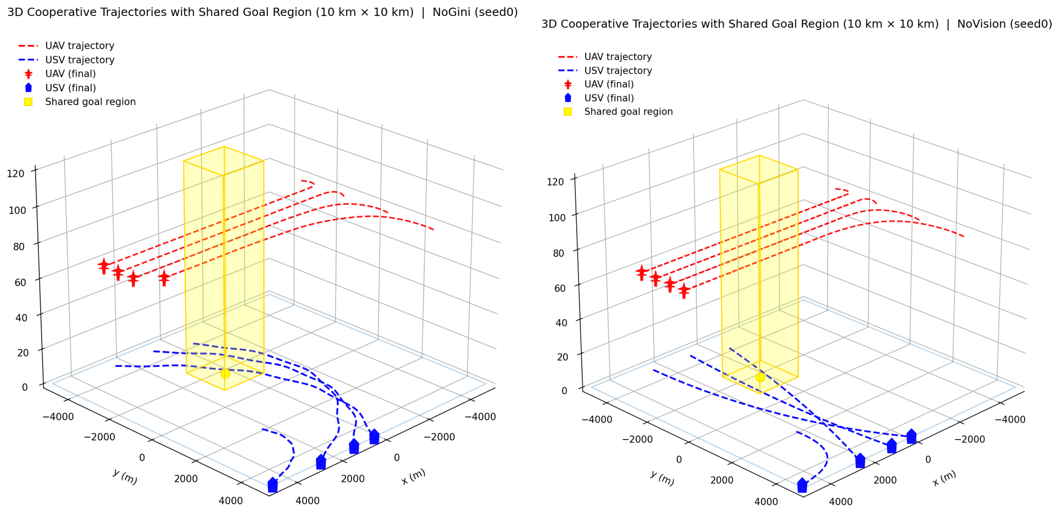 from 0.33 to 0.13, indicating substantially stronger arrival-time consistency among heterogeneous agents. In terms of mission completion efficiency,