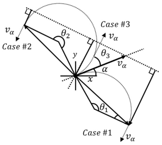 Each of these cases are depicted in Figure 9. The choice between cases 1 and 2 may seem trivial at first but depending on the aircrafts’ headings, choosing the minimum bearing change may actually steer the sensing aircraft towards the intruder rather than away. However, when considering the actual kinematic and geometric configuration, this may still be the best course of action. The choice of which avoidance course to take for any given scenario requires a more complex analysis that is outside the scope of this paper. To simplify the analysis, we thus assume the aircraft adheres to avoidance case 1.