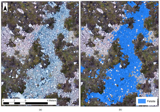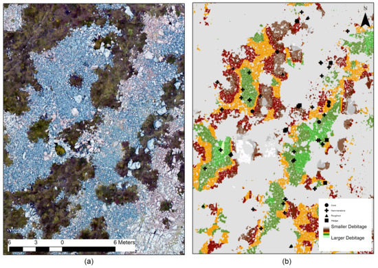 (a) Felsite debitage spread and (b) classified image (Image by the Authors).
