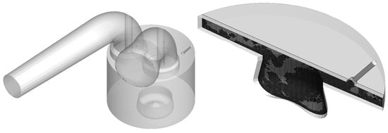 (Left) geometry of the RefCCI engine used in the CFD simulation. (Right) slice rendition of the mesh during injection.