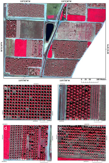 - Ozdarici-Ok, A. Automatic detection and delineation of citrus trees from VHR satellite imagery. Int. J. Remote Sens. 2015, 36, 4275–4296. [Google Scholar] [CrossRef]