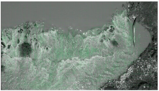 UAVs have been utilized for the image-based analysis of water velocity by various researchers [,,,,]. This was the first time these different image-based methods were applied in Greece, and the first time DJI Spark was used for such applications worldwide. The specific reach studied provided the necessary natural surface patterns for image analysis (surface ripples), but further measurements will be conducted in different reaches in future where there are no natural surface patterns. Various vegetation debris, such as tree branches and leaves, will be examined as surface flowing particles, to enable us to apply these image-based methods []. These measurements will be obtained by coupling current flow meter measurements for the entire width of the river, in order to evaluate the results of the image-based methods. In addition, bathymetry measurements will be done along the entire width of the river in order to estimate, accurately, the stream discharge.