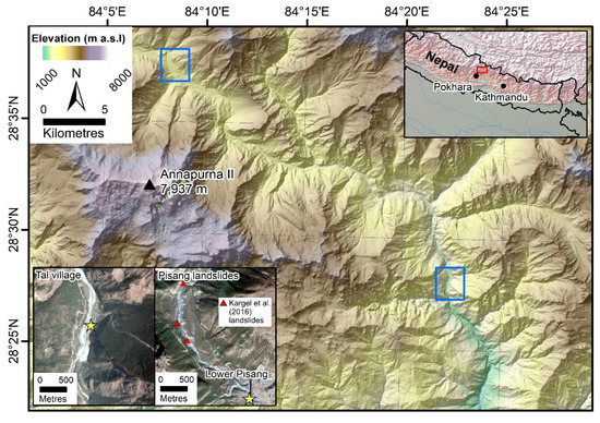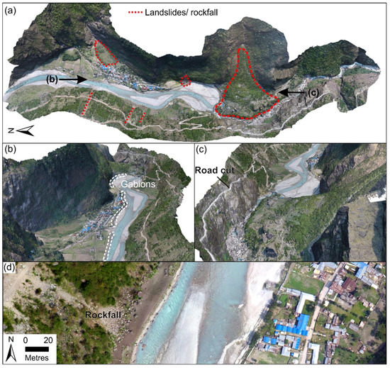 - Fort, M.; Cossart, E.; Arnaud-Fassetta, G. Hillslope-channel coupling in the Nepal Himalayas and threat to man-made structures: The middle Kali Gandaki valley. Geomorphology 2010, 124, 178–199. [Google Scholar] [CrossRef]