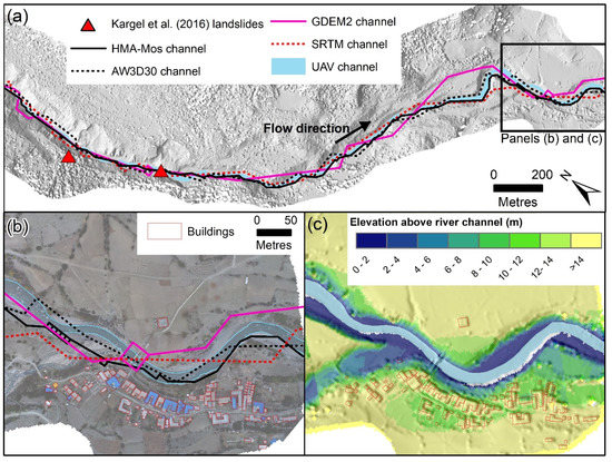 | DEM | Distance between DEM- and UAV-Derived River Channels (m) | Mean Building Elevation above the River Channel (m) | |
