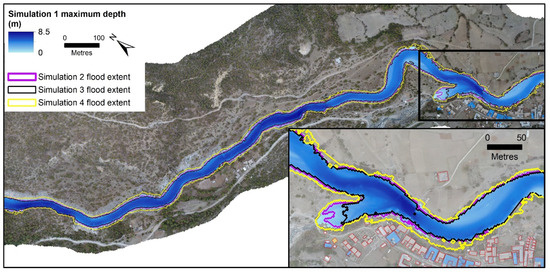 - Westoby, M.J.; Glasser, N.F.; Hambrey, M.J.; Brasington, J.; Reynolds, J.M.; Hassan, M.A.A.M. Reconstructing historic Glacial Lake Outburst Floods through numerical modelling and geomorphological assessment: Extreme events in the Himalaya. Earth Surf. Process. Landf. 2014, 39, 1675–1692. [Google Scholar] [CrossRef]