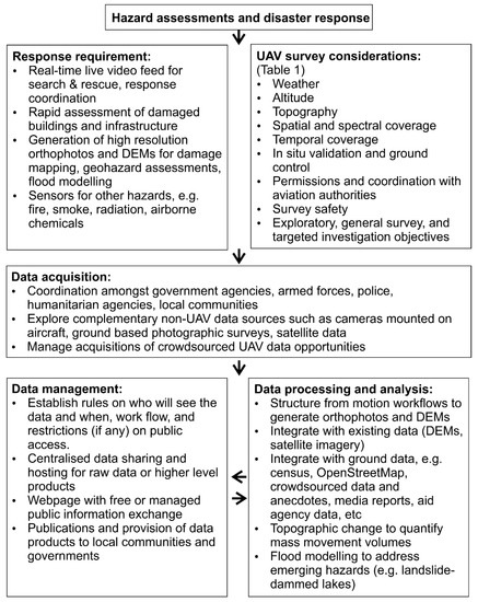 | Permissions, cost, and data availability | Potential to crowdsource imagery following a disaster or to generate baseline topography for ongoing monitoring | Transportation costs and import regulations Permit, licensing, and liability insurance requirements Local permissions or objections to flights Higher costs per square kilometre of survey due to fieldwork deployment |