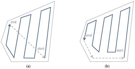 Energy-aware back-and-forth coverage path planning algorithm: (a) Odd number of stripes; (b) Even number of stripes.