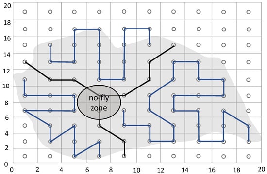 - Forsmo, E.J.; Grøtli, E.I.; Fossen, T.I.; Johansen, T.A. Optimal Search Mission with Unmanned Aerial Vehicles Using Mixed Iintege rLinear Programming. In Proceedings of the 2013 International Conference on Unmanned Aircraft Systems (ICUAS), Atlanta, GA, USA, 28–31 May 2013; pp. 253–259. [Google Scholar]
