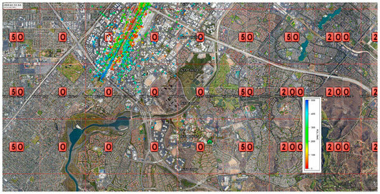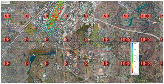Based on this data alone, the following are some of the grids that could be removed from the zero altitude list with no risk to manned aircraft, if the safe distance between manned aircraft and UAVs is 400′ and one mile (Figure 1, Figure 2, Figure 3, Figure 4, Figure 5, Figure 6, Figure 7 and Figure 8) (excluding grids in the traffic pattern).