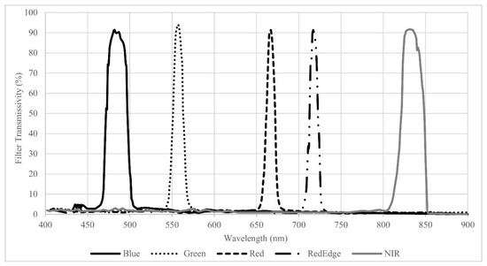 MicaSense RedEgde laboratory-measured spectral response functions.