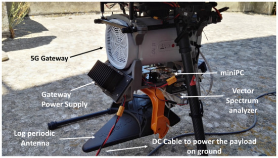Drone payload with 5G Gateway and jammer detection hardware.