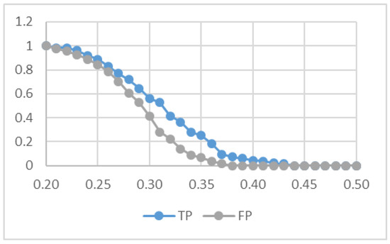 For the particular experiment in Figure 4, we used a video of length 180 s, in which two subjects appear, one belonging to the dataset (who, therefore, should be recognized by the system) and one extraneous to the dataset (i.e., an unknown). The system detected 135 faces of the known person and 135 faces of the unknown person. As previously mentioned, by varying the value of a specific threshold, it is possible to tune the degree of selectivity of the system. However, there is a trade-off: if we want to reduce the number of false positives, we must accept a lower number of true positives. For example, for an acceptable result in our scenario we set the threshold to 0.37, thus obtaining a number of true positives of about 10% against a number of false positives of 1%. The reason for this result is that the images were very blurry due to the use of the zoom of the camera and to the strong oscillations of the drone induced by the wind.