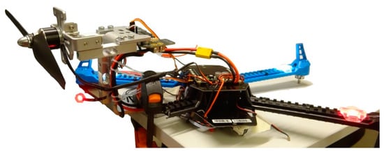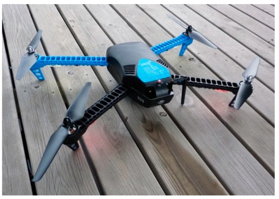 Within the field of quadrotor control, the vehicle’s position or velocity is often estimated in order to improve the control algorithms. Allibert et al. [] proposed a method of estimating the air velocity of a quadrotor in the body-fixed reference frame by designing an observer based on both aerodynamic theory and accelerometer data.