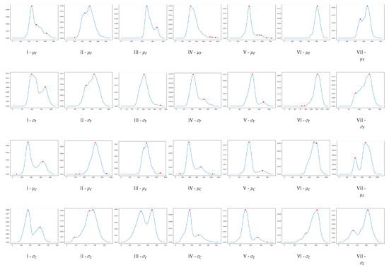 In order to create a comprehensive and exhaustive bank of biases, all possible combinations of MDS-D parameters are considered in the process. It means that in cluster I, there will be × patterns. Table 3 reports the values of peaks extracted from the distributions. It also indicates how many biases were generated per cluster.