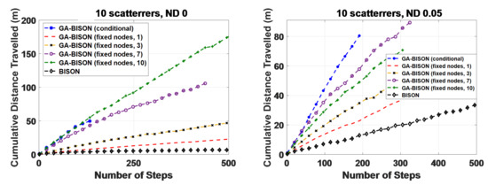 An approach capable of using local and partial knowledge only will furthermore be able to operate in dynamic environments. In BISON, nodes only scan their local environment and identify nearby objects / nodes. Their obstacle-trimmed Voronoi regions are calculated using this subjective information, as is their resulting movement (aiming to position them closer to their updated Voronoi centroid). In the literature, this local information about the position and movement of neighbouring nodes and obstacles is often assumed to be perfect. This is a strong simplification, as measurements in the real world will always be subject to error and noise. Some methods propose using anchor nodes of known locations to predict the locations of all other nodes [78,79], or by adding a (random) uncertainty value to the measured distances between the nodes and their neighbors [65].
