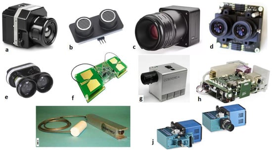 Many sensing technologies are used for underground mining applications, including the stereo camera, ultrasonic sensors, dual redundant IMUs, and infrared sensors used by DJI [,]. Ultrasonic sensors are low-cost sensors for obstacle detection that have been tested by several studies. Other kinds of obstacle detector sensors that are repeatedly used by researchers include infrared sensors, stereo cameras, and laser range finders (LRFs) [,,,,,].