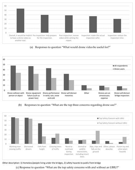 Top concerns regarding UAS for bridge inspection include a collision with a person or object, a UAS equipment failure, or the capability of the UAS to perform in harsh conditions, such as wind, rain, and cold (Figure 1b). UAS battery life is compromised by cold, and there are limits regarding the capability to safely navigate drones in windy conditions.