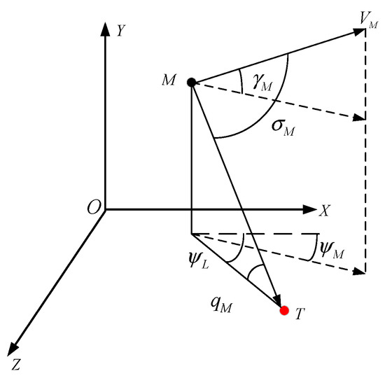 In Figure 1, and represent the missile and the target, respectively, and the mathematical model of motion between them can be expressed as