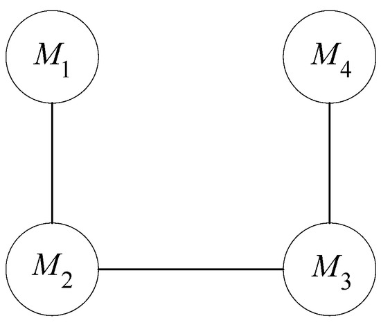 The communication topology among multiple UAVs can be represented by undirected graph , in which describes the set of nodes, represents the connection between two nodes, matrix represents the weight coefficient matrix. If information can be exchanged between the ith UAV and the jth UAV, ; otherwise, . In particular, . Since is an undirected graph, there is . If there is at least one path between any two nodes in , the whole graph is connected. The Laplace matrix corresponding to undirected graph among multiple UAVs is defined as , Where the elements of the matrix are