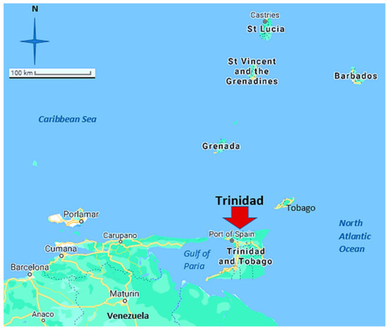 - Google Maps Trinidad and Tobago. Available online: https://www.google.tt/maps/@12.7343455,-61.8978596,7.25z?hl=en (accessed on 28 July 2021).