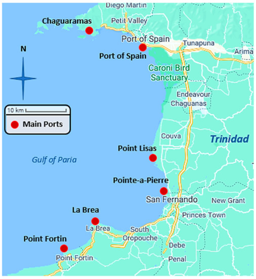 Main Ports in the Gulf of Paria, Trinidad. Adapted from [17].