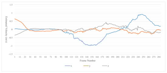 Estimated velocity of the dynamic obstacle that started at the lower right (Person3) in Figure 12.