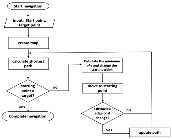 - Koenig, S.; Likhachev, M. D* Lite. In Proceedings of the AAAI Conference of Artificial Intelligence (AAAI), Alberta, AB, Canada, 28 July–1 August 2002; pp. 476–483, ISBN 978-0-262-51129-2. [Google Scholar]