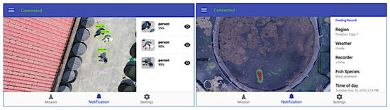 Lastly, the proposed system is a suitable alternative to expensive sensors and multiple cameras needed to cover the requirement for aquaculture site surveillance. Instead of using different recognition systems to monitor the inspection works individually, our proposed method combined various recognition models to form one framework that performs and executes various AI surveillance techniques and multiple inspection tasks. Additionally, to deal with usability problems, the system integrated a simple and easy-to-use mobile-based drone navigation application. Users can easily navigate the application and it will not require high technical skills in its operations. The drone is provided with a given altitude and camera position parameters to perform further surveillance at an intended location. Upon confirmation of suspicious activity on the site, the system triggers an alarm module that implements a vision-based Artificial Intelligence-Based Internet of Things (AIoT) system and sends the surveillance report to the user using the drone navigation application. As part of the notification, for the fish feeding intensity, the system alerts the user when the fish motion is no longer significant, which implies that feeding is already sufficient. Our proposed approach allows the deployment of a low-maintenance and cost-efficient system that utilizes a wireless network as its primary communication channel. The main contributions of our proposed system include: