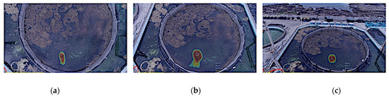 Altitude and camera angle are important considerations when capturing videos during the fish feeding activity. Higher altitude denotes a smaller image size, and a change in camera angle would also make a target object bigger or smaller. To address this, we first collected different images of fish feeding activity using a drone with different heights and viewing angles (Figure 14). Then, we identified the combination in terms of altitude and perspective that yields the highest accuracy rate. The combination of the lowest height (4 m) with the top view (top of the cage) produced the highest accuracy rate for the fish feeding-intensity evaluation.