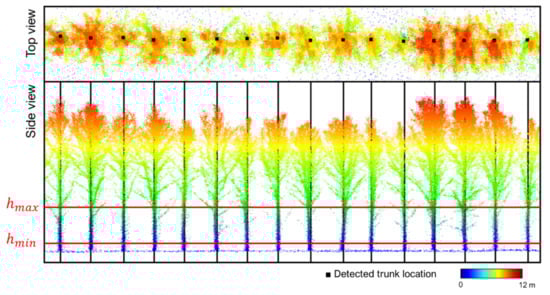 - The proposed trunk localization approach utilizes both point density and height. Compared to the DBSCAN that solely relies on point density, it is more reliable when dealing with noisy and sparse point clouds.