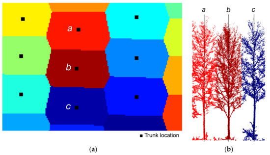 - Lu, X.; Guo, Q.; Li, W.; Flanagan, J. A bottom-up approach to segment individual deciduous trees using leaf-off lidar point cloud data. ISPRS J. Photogramm. Remote Sens. 2014, 94, 1–12. [Google Scholar] [CrossRef]