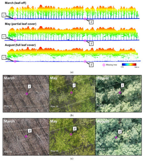 4.1. UAV LiDAR Data under Different Leaf Cover Scenarios