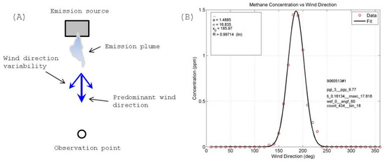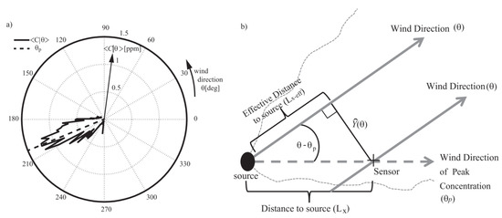 Once n is known, an estimate of the source rate can be determined using the measured concentration and wind speed, . In this approach, due to the time-averaged ensemble, the accuracy improves over time (nominal averaging period of 15 min [124]). An alternate expression for the emission estimate is given as