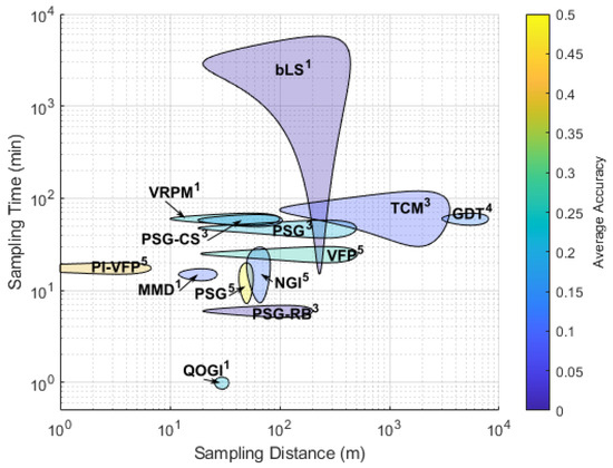 A field study comparison of different landfill methods for assessment of fugitive gas emissions was explored in [77]. This included VRPM, TDM, DiAL, MicroMeteoroligcal (Eddie Covariance method), and Flux chamber, and VRPM (close to the source, ≈10 m) and TDM (≈400 m) performed quite well against DiAL. In a paper from the UK, a review quantification of biogas plants was undertaken with inverse dispersion modeling (e.g., bLS), a tracer dispersion model, and OGI for different feedstock cases [72]. Mass balance approaches have also been applied using UAVs developed in [78].