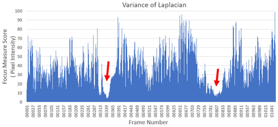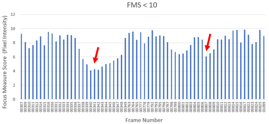 Figure 5. Frames at which the focus measure score is below 10 were sorted out from the entire dataset and merged in