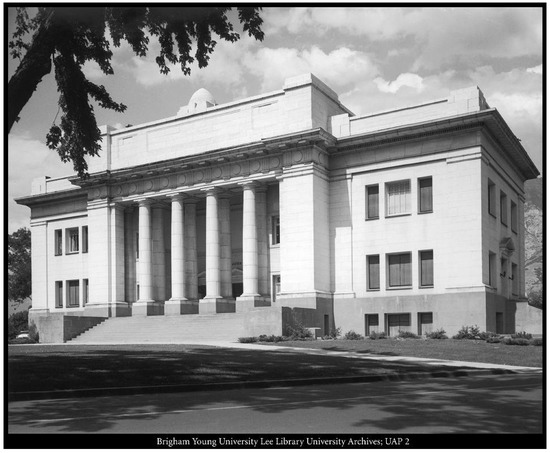 - Brigham Young University News Bureau. Maeser Memorial Building, ca. 1911, Courtesy, Perry Special Collections; Harold B. Lee Library, Brigham Young University: Provo, UT, USA, 2005. [Google Scholar]