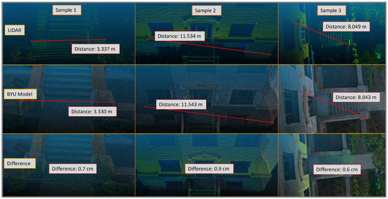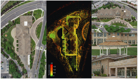 Additional data were gathered using a Velodyne VLP-16 LIDAR puck and two 360° cameras but were not used for final model reconstruction due to complexity and lack of data or software capabilities (both technologies present routes of future inquiry). The Velodyne LIDAR system configuration did not include a GPS unit to tag scans and were taken while the user was in motion. The available free output processed through Kaarta’s web processing site [81] was not suitable for incorporation in the final model due to the lack of GPS and point direction metadata, though an analysis of relative distances differences between models was conducted and is discussed in Section 4.2.3. The 360° cameras used (a GoPro Fusion and a Insta 360 OneX), had limited success in modeling, introduced more error into the final model than the traditional pinhole cameras, and were therefore left out. Further studies optimizing and analysing the use of newer 360° cameras may be of interest for future work, especially in enclosed areas, although the distortion in these kind of camera lenses make them less user-friendly for SfM reconstruction [82,83,84].