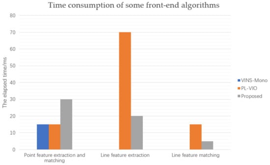 Figure 10 shows the average computation time per frame of each module under EuRoC data set of three algorithms.