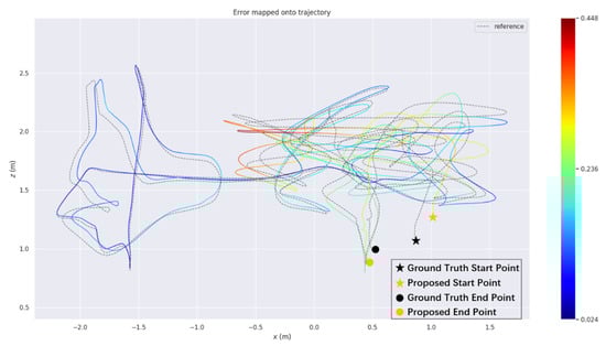 Motion estimation errors of three algorithms in the EuRoC dataset (RMSE unit: m) Absolute trajectory error for both algorithms.