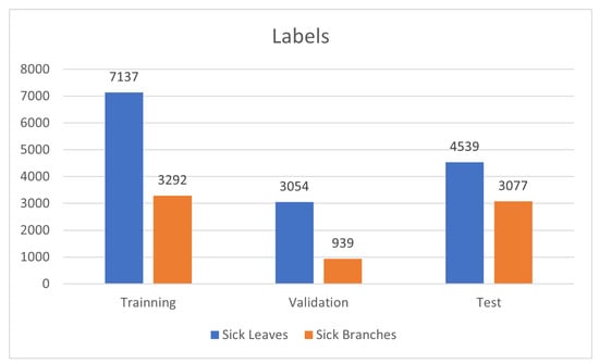 - Infected leaves class has 11,676 labels and infected branches 6369.
